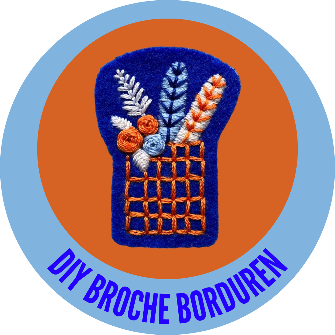 Zowel het vaasje als de plantjes borduur je in de stiksteek. Voor de 2 rechtse plantjes in het oranje en blauw borduur je dus over de satijnsteek die we in de vorige stap borduurden. Je naait dit een beetje op gevoel omdat we al over het patroon hebben geborduurd.