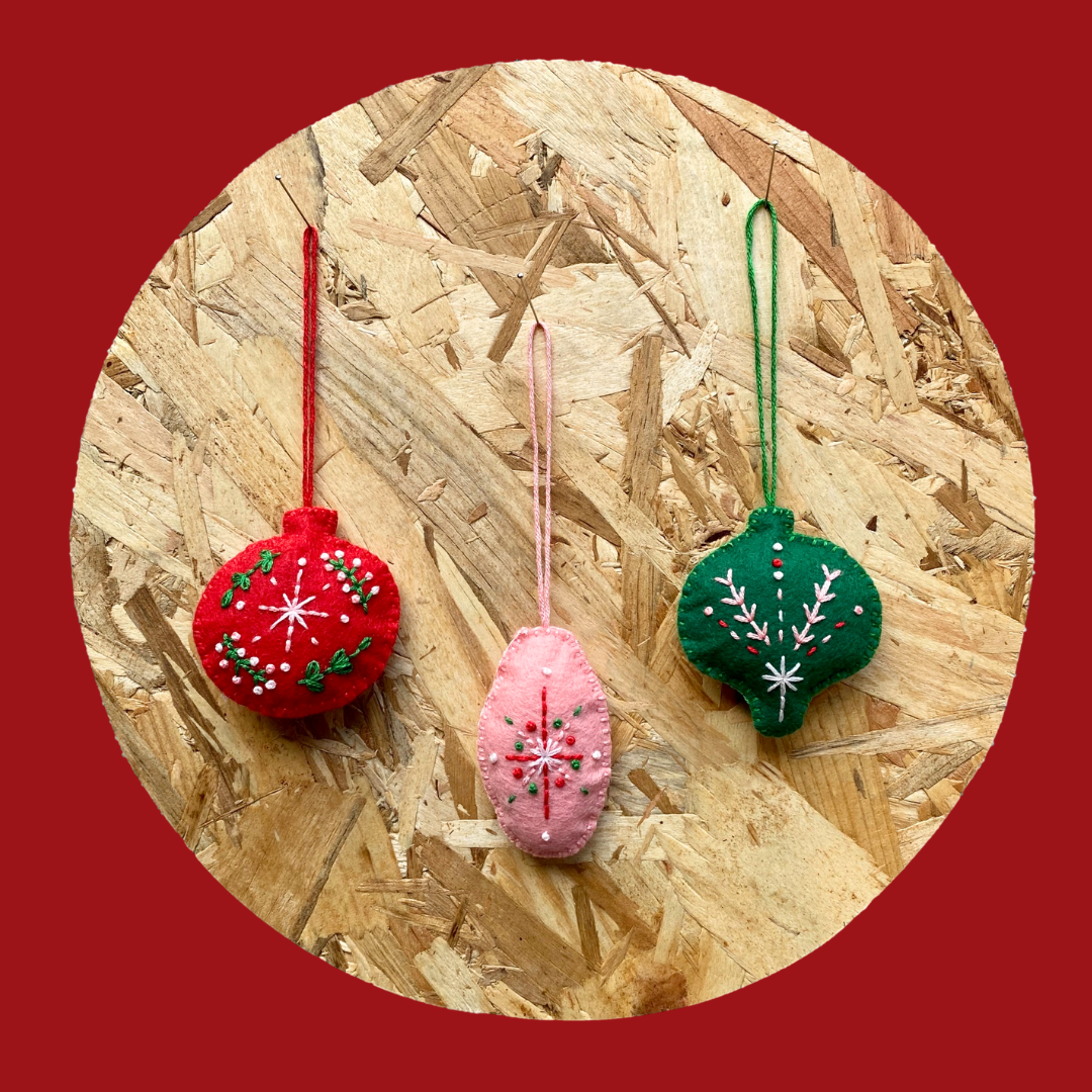 Je ontvangt een borduurpakketje voor het maken 3 kersthangers. Wat zit er inbegrepen:
