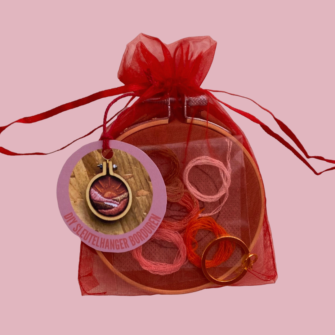Je ontvangt een borduurpakketje voor het maken van je eigen sleutelhanger. Wat zit er inbegrepen: