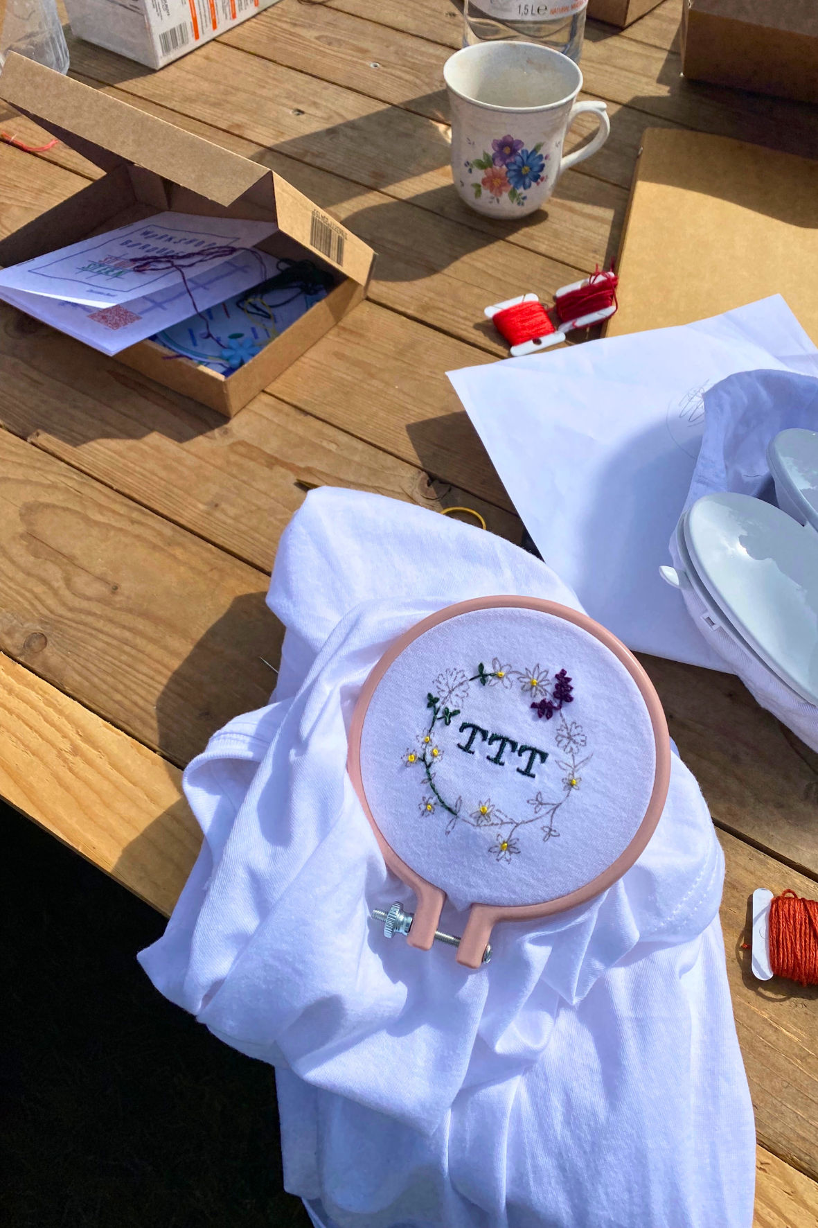 Je kan borduren op een kledingstuk of op het meegeleverd stukje stof. Na afloop kunnen jullie het borduurgaren en patroonpapier verdelen onder elkaar en kan je thuis nog voortborduren met het individueel doosje dat je hebt gekregen.
