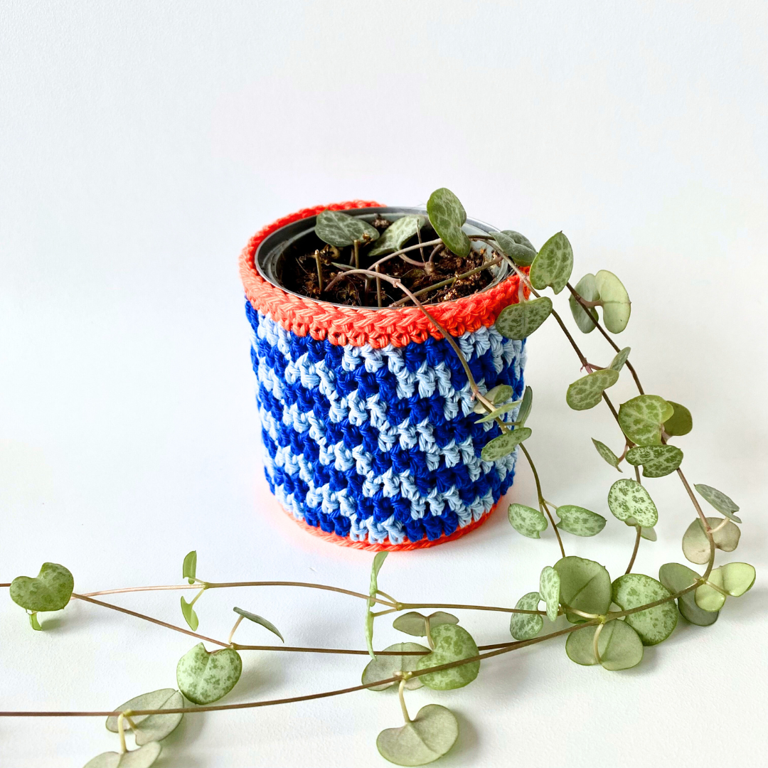 Geen leuke potjes meer thuis? Of wel wat kleine blikjes die in de PMD moeten. Geen nood, vrolijk ze op met dit hoesje dat je over het potje kan schuiven. Het past op een potje of blikje met een diameter van 6 cm en een hoogte van 7 cm.
