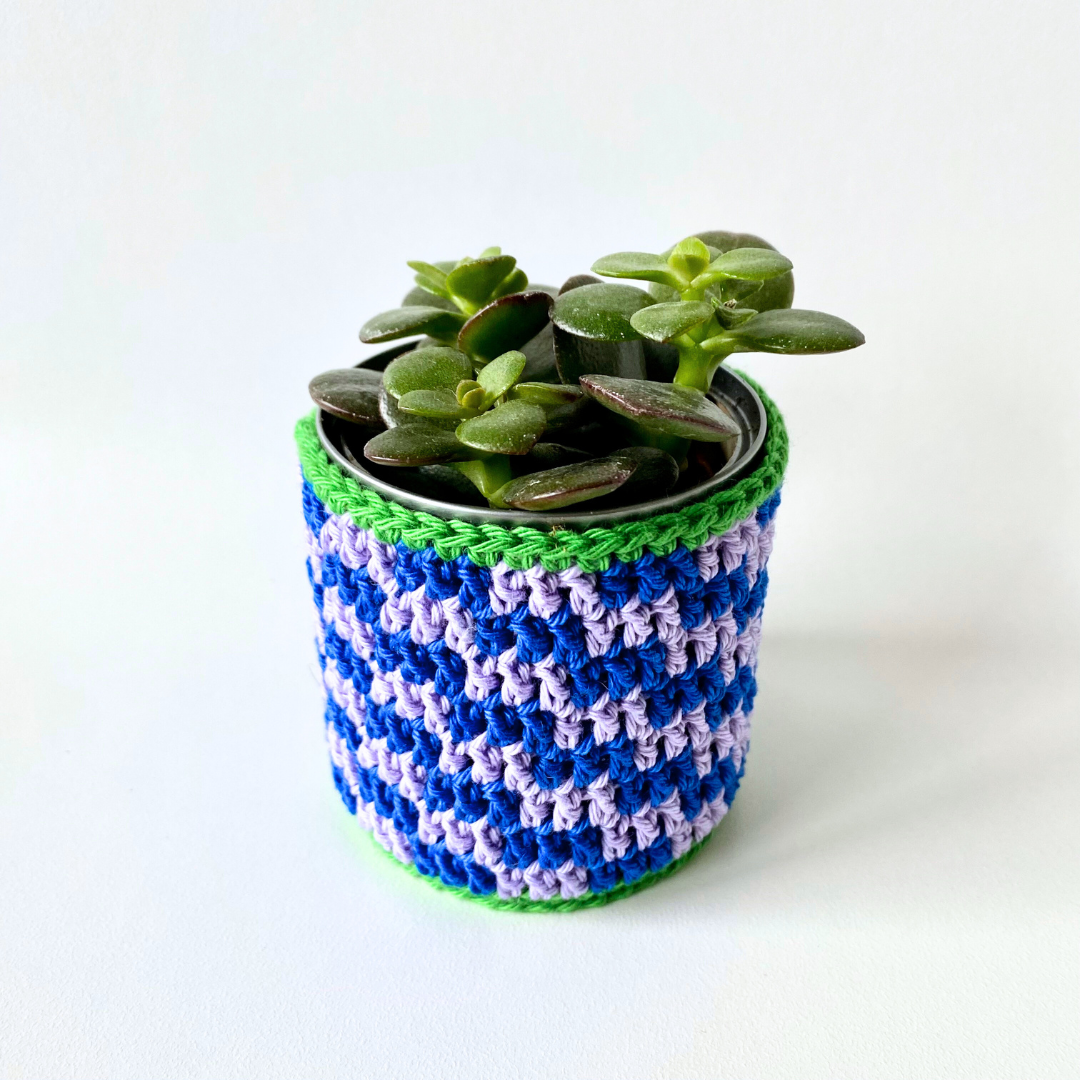 Geen leuke potjes meer thuis? Of wel wat kleine blikjes die in de PMD moeten. Geen nood, vrolijk ze op met dit hoesje dat je over het potje kan schuiven. Het past op een potje of blikje met een diameter van 6 cm en een hoogte van 7 cm.