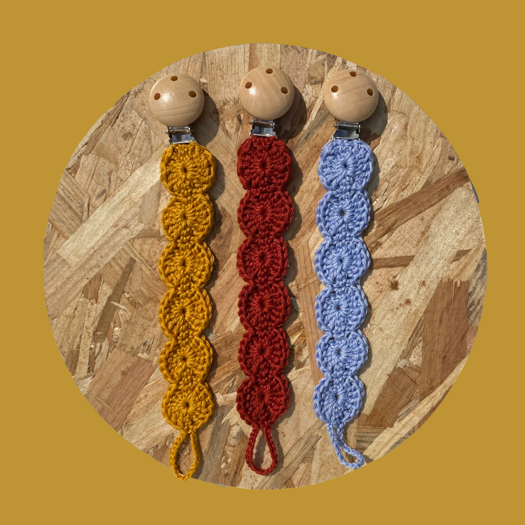 Deze zelfgehaakte speenkoord is niet alleen praktisch, maar ook een stijlvol accessoire voor je kleintje! De speenkoord is stevig en veilig, met een clipsluiting die eenvoudig aan kleding of een babydekentje te bevestigen is.