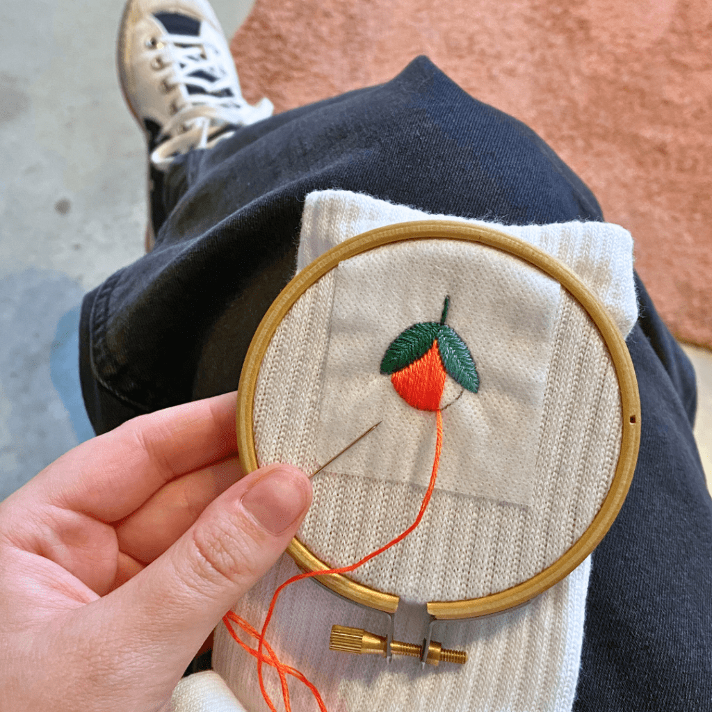 Workshop waarbij je leert om te borduren op een paar sokken.
