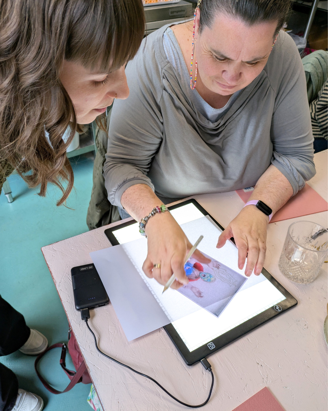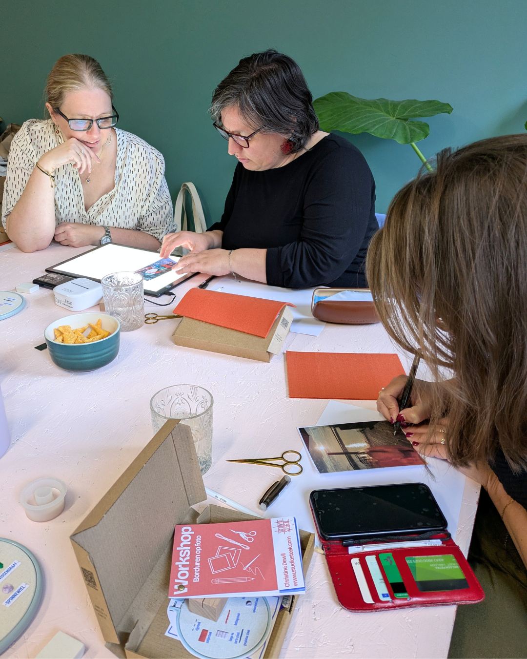 Je leert in deze workshop borduren op papier. Dat is iets moeilijker dan borduren op stof omdat papier natuurlijk kan scheuren. Maar laat dat je vooral niet afschrikken, ik heb genoeg hulpmiddeltjes en tips voorhanden die ik jullie met veel plezier aanreik!